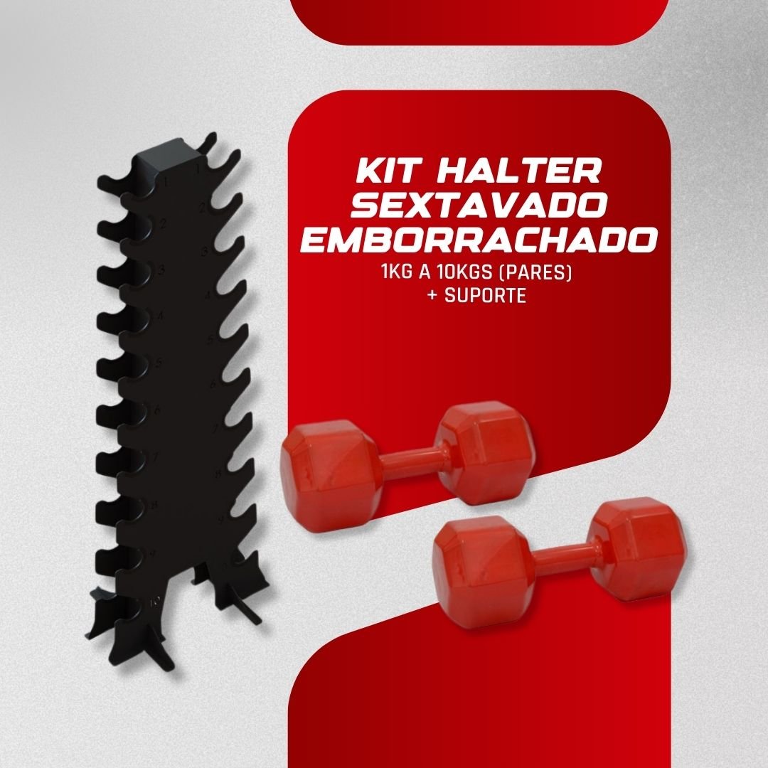 Kit Halter Sextavado Emborrachado 01 a 10kg + Suporte